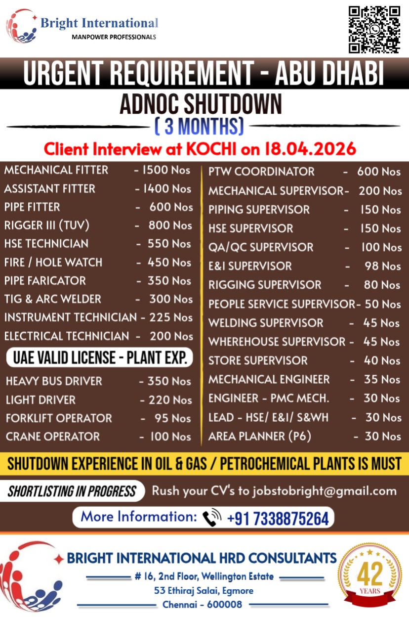FREE REQUIREMENT - ADNOC SHUTDOWN ( 3 MONTHS)