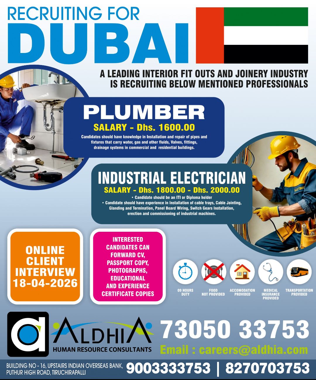 URGENT REQUIREMENT FOR SAUDI ARABIA CLIENT INTERVIEW ON 19/04/2026 @ CHENNAI