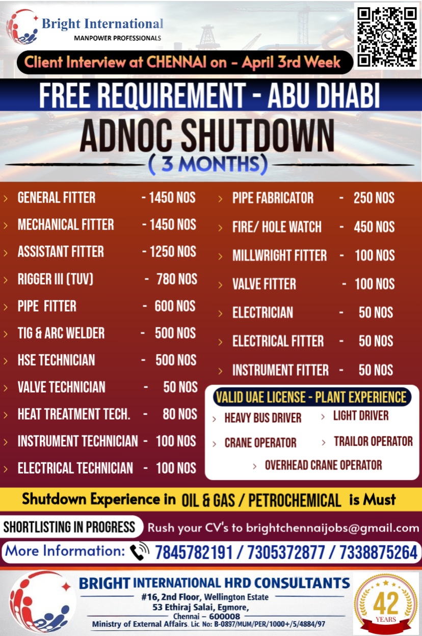 FREE REQUIREMENT - ADNOC SHUTDOWN