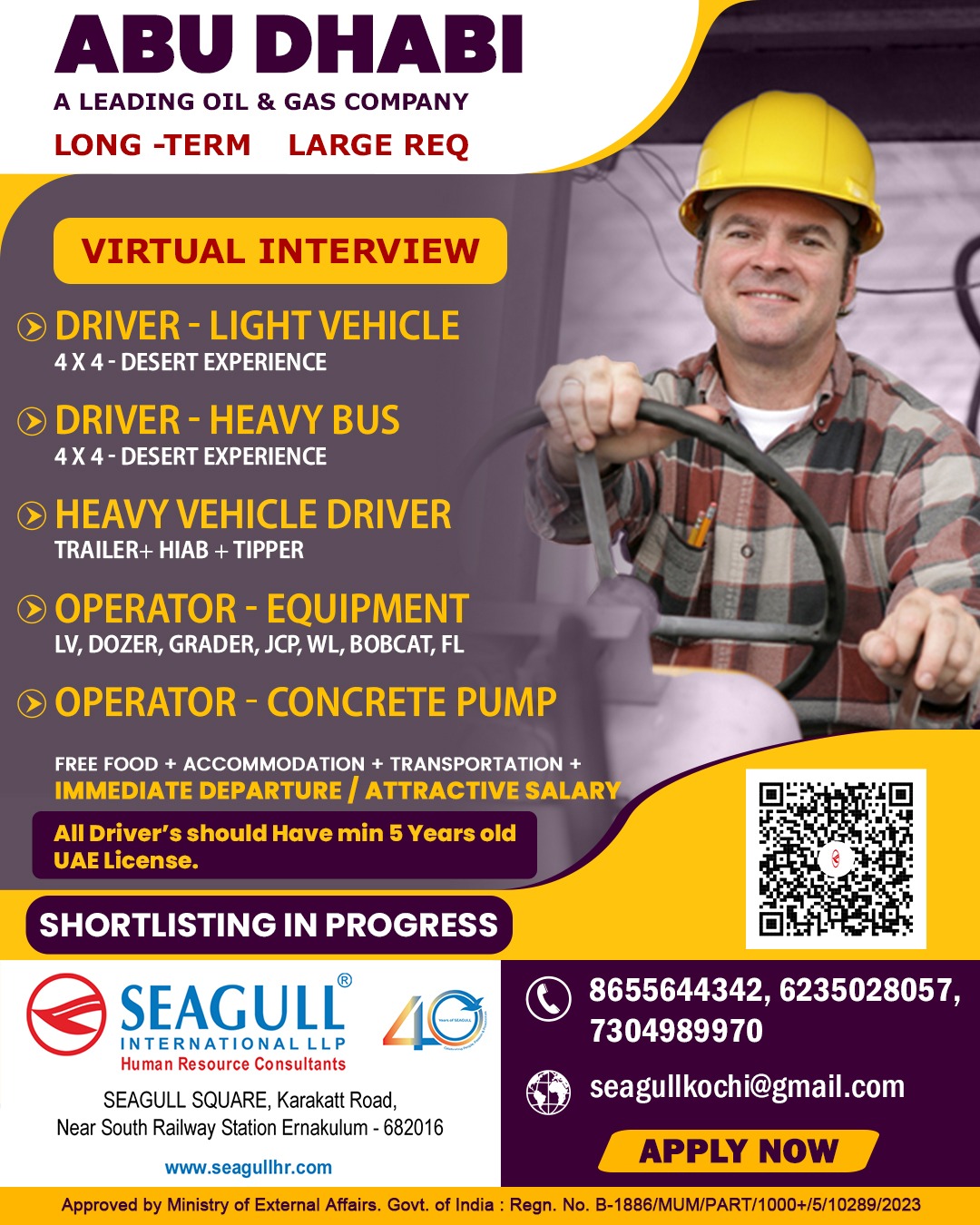 URGENT REQUIREMENT -SAUDI ARABIA - LONG TERM ONLINE INTERVIEW - CV SHORTLISTING IN CHENNAI