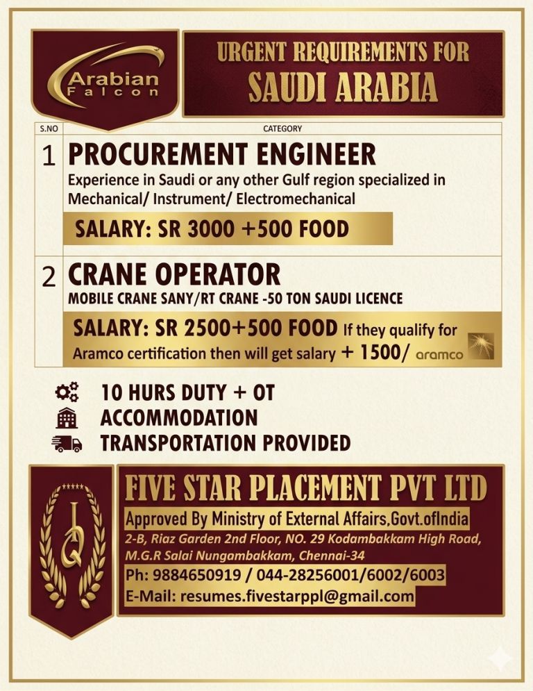 URGENT REQUIREMENT FOR SAUDI ARABIA