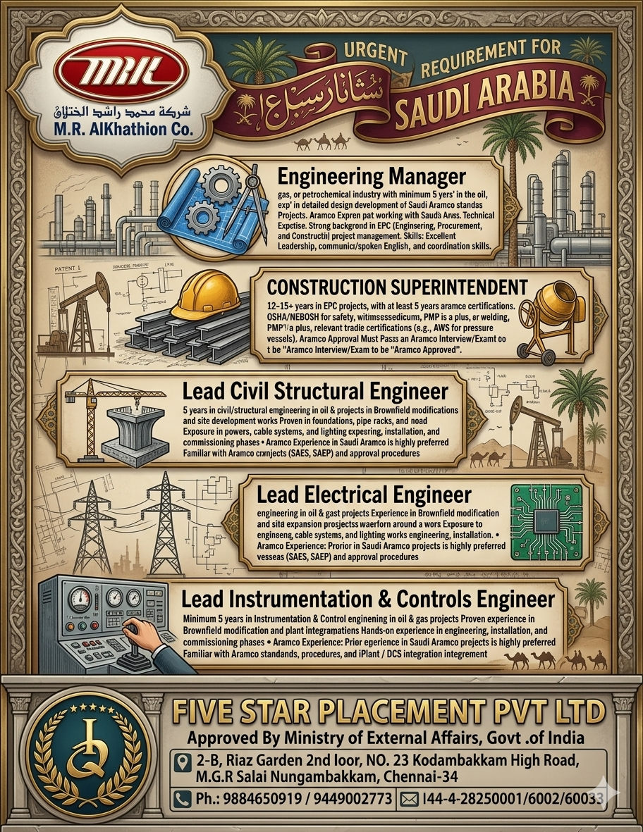URGENT REQUIREMENT FOR SAUDI ARABIA