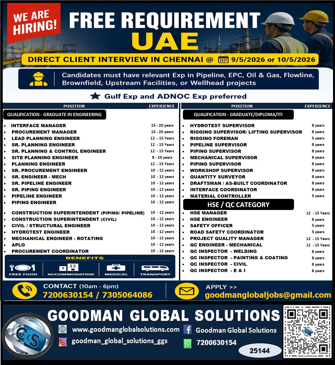 FREE REQUIREMENT -UAE - LONG TERM DIRECT CLIENT INTERVIEW IN CHENNAI @ 09-05-2026 or 10-05-2026