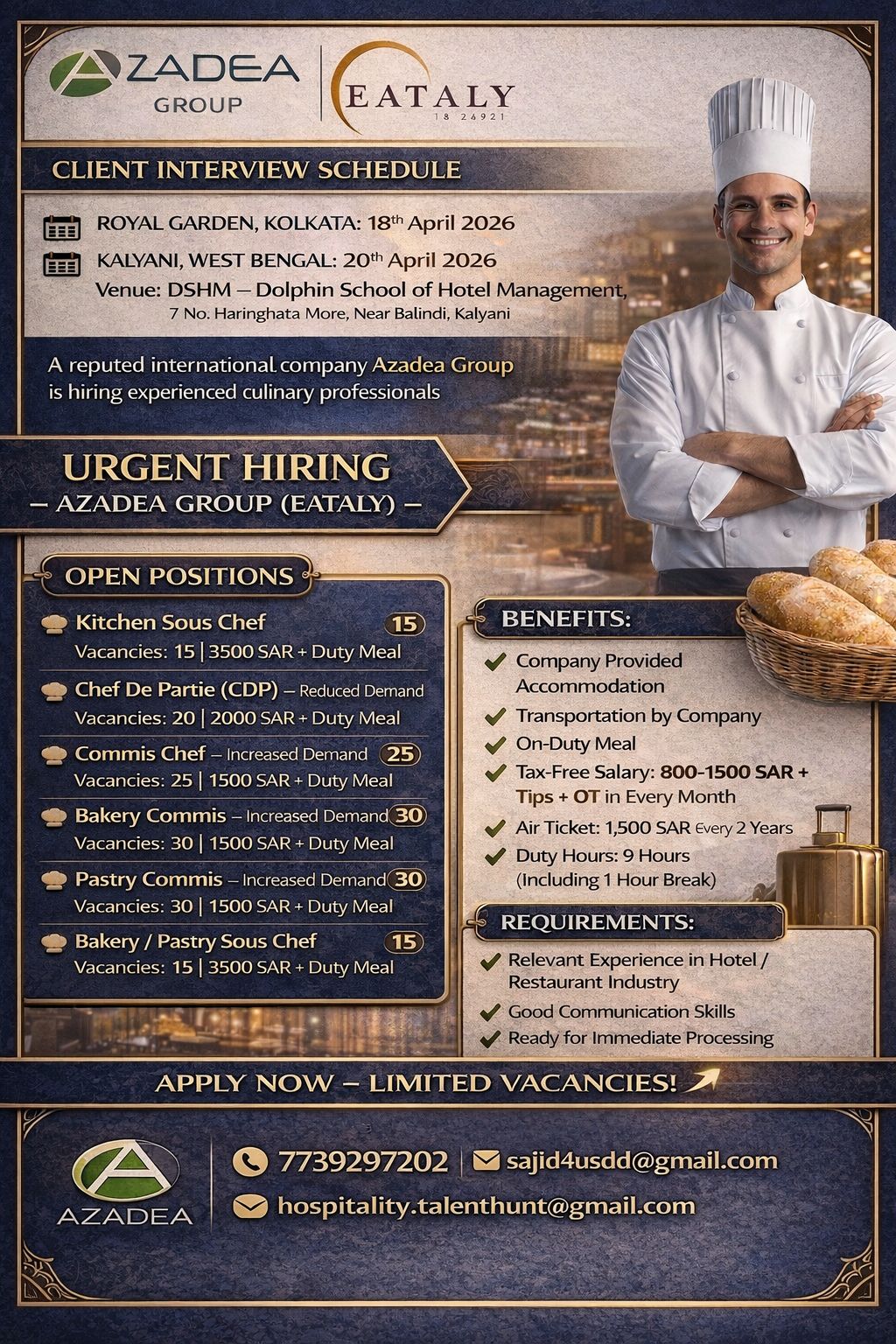 URGENT REQUIREMENT FOR SAUDI ARABIA CLIENT INTERVIEW ON 19/04/2026 @ CHENNAI