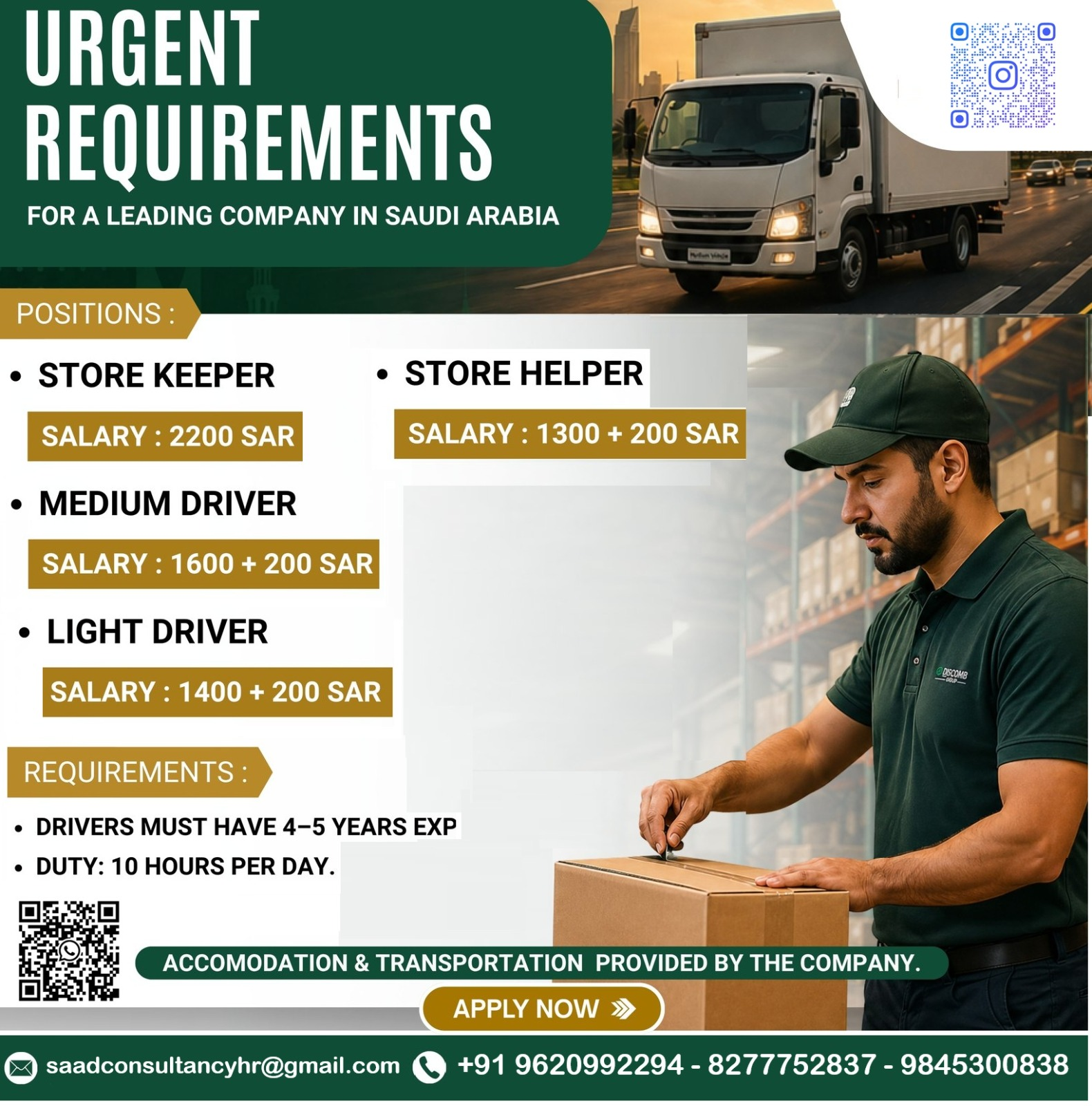 • URGENT HIRING! WE ARE HIRING FOR KSA